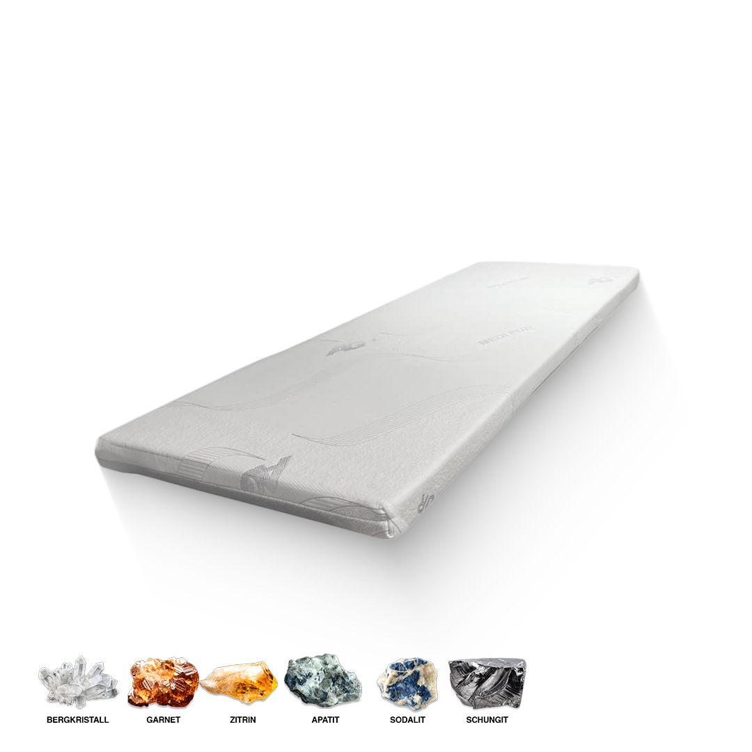 - MATRATZENAUFLAGE MEDI PUR – KRISTALLTHERAPIE (5 cm) – der obere Teil der Matratzenauflage besteht aus 5 cm THERMOEMPFINDLICHEM ORTHOPÄDISCHEM MEDI PUR-MATERIAL, EINE STANDARDDOSIS EINER KRISTALL-MINERALMISCHUNG wird in die Matratzenauflage eingebracht, und der untere Teil der Matratzenauflage besteht aus hochelastischem KALTFORMSCHAUM